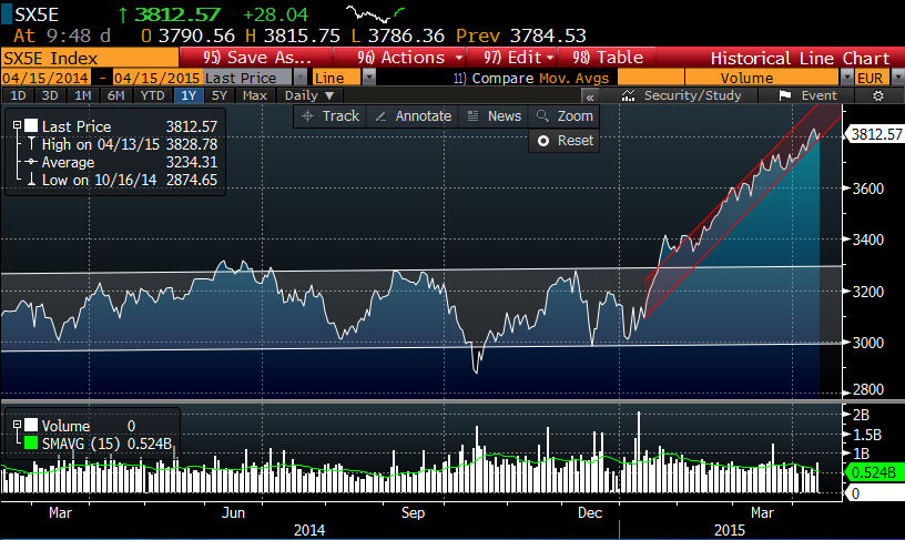 Trades: I am short the euro and long European consumer discretionary stocks. I don’t see any reason to change going into the press conference today.