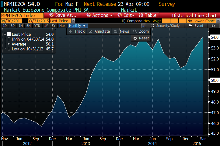 So can Draghi restrain himself, or will he be smiling from ear to ear and patting himself on the back? He has some justification to be happy with how things have evolved over the past six weeks. I think that is largely down to (lucky) timing, in that the EZ was actually showing some small positive growth signs back late last year. That said, the big easing programme into that (small) cyclical upturn has no doubt provided more of a fillip to confidence, has helped to boost asset prices and weaken the euro. All of which should help to turn around the inflation outlook and reduce the risk of inflation expectations de-anchoring to the downside. Of course, it would have been better if the ECB could have agreed to pursue this route over a year ago, but here we are.